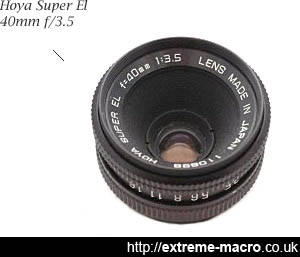 Hoya Super El 40mm f/3.5. a budget 4 element design, it is somewhat useless for extreme macro stacking, but certainly makes a fetching old school paperweight.